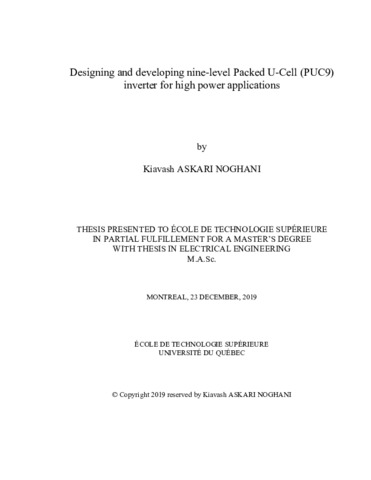Askari Noghani, Kiavash (2019). Designing and developing nine-level Packed U-Cell (PUC9) inverter for high power applications. Mémoire de maîtrise électronique, Montréal, École de technologie supérieure.