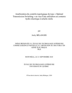 Bélanger, Jacky (2020). Amélioration du contrôle topologique de type « Optimal Transmission Switching » en vue d’une utilisation en contexte hydro-électrique à échelle réelle. Thèse de doctorat électronique, Montréal, École de technologie supérieure.