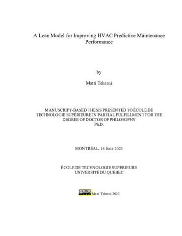 Therani, Matti (2023). A Lean model for improving HVAC predictive maintenance performance. Thèse de doctorat électronique, Montréal, École de technologie supérieure.