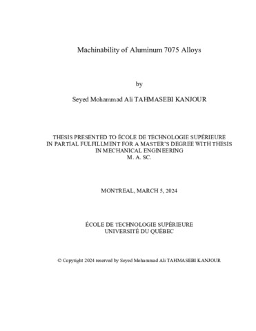 Tahmasebi Kanjour, Seyed Mohammad Ali (2024). Machinability of aluminum 7075 alloys. Mémoire de maîtrise électronique, Montréal, École de technologie supérieure.