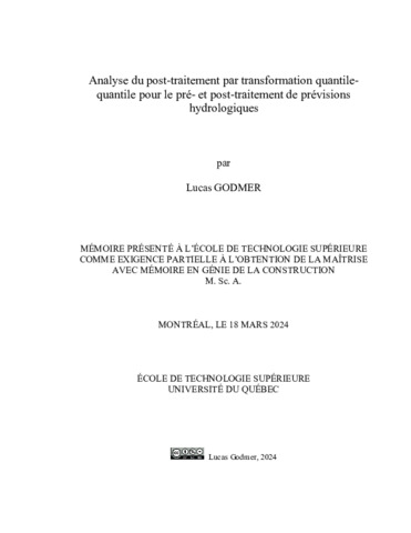 Godmer, Lucas (2024). Analyse du post-traitement par transformation quantile-quantile pour le pré- et post-traitement de prévisions hydrologiques. Mémoire de maîtrise électronique, Montréal, École de technologie supérieure.