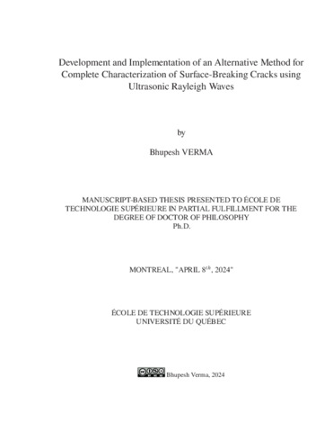 Verma, Bhupesh (2024). Development and implementation of an alternative method for complete characterization of surface-breaking cracks using ultrasonic Rayleigh waves. Thèse de doctorat électronique, Montréal, École de technologie supérieure.