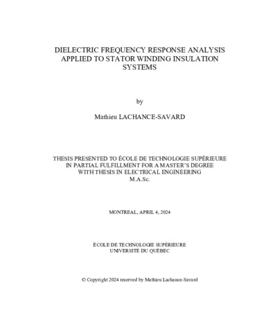 Lachance-Savard, Mathieu (2024). Dielectric frequency response analysis applied to stator winding insulation systems. Mémoire de maîtrise électronique, Montréal, École de technologie supérieure.