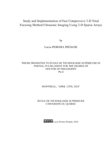 Pereira Piedade, Lucas (2024). Study and implementation of fast compressive 3-D total focusing method ultrasonic imaging using 2-D sparse arrays. Thèse de doctorat électronique, Montréal, École de technologie supérieure.
