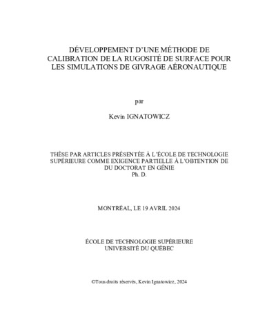 Ignatowicz, Kevin (2024). Développement d’une méthode de calibration de la rugosité de surface pour les simulations de givrage aéronautique. Thèse de doctorat électronique, Montréal, École de technologie supérieure.