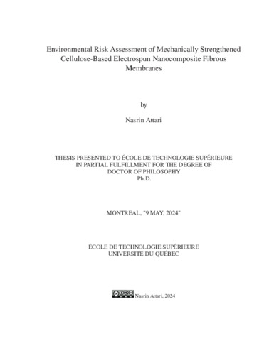 Attari, Nasrin (2024). Environmental risk assessment of mechanically strengthened cellulose-based electrospun nanocomposite fibrous membranes. Thèse de doctorat électronique, Montréal, École de technologie supérieure.