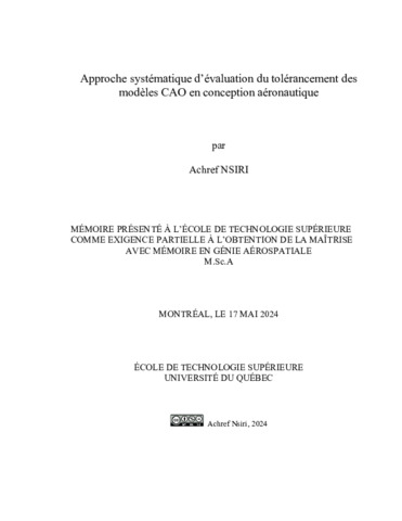 Nsiri, Achref (2024). Approche systématique d’évaluation du tolérancement des modèles CAO en conception aéronautique. Mémoire de maîtrise électronique, Montréal, École de technologie supérieure.