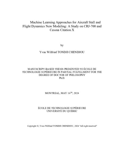 Tondji Chendjou, Yvan Wilfried (2024). Machine learning approaches for aircraft stall and flight dynamics new modeling: a study on CRJ-700 and Cessna Citation X. Thèse de doctorat électronique, Montréal, École de technologie supérieure.