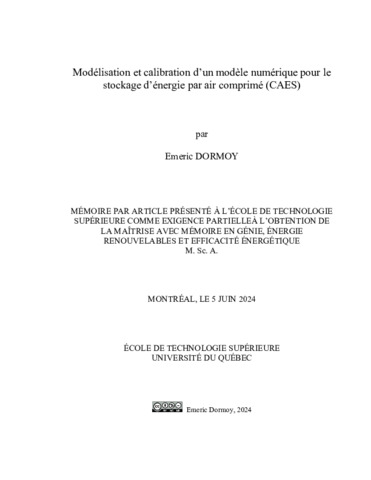 Dormoy, Emeric (2024). Modélisation et calibration d’un modèle numérique pour le stockage d’énergie par air comprimé (CAES). Mémoire de maîtrise électronique, Montréal, École de technologie supérieure.