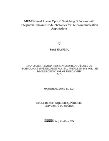 Sharma, Suraj (2024). MEMS-based planar optical switching solutions with integrated silicon nitride photonics for telecommunication applications. Thèse de doctorat électronique, Montréal, École de technologie supérieure.