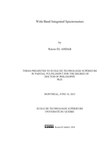 El Ahdab, Ranim (2024). Wide band integrated spectrometers. Thèse de doctorat électronique, Montréal, École de technologie supérieure.