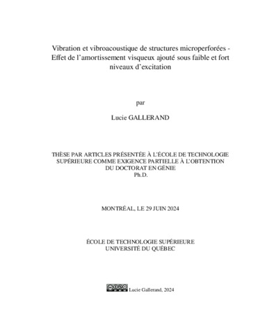 Gallerand, Lucie (2024). Vibration et vibroacoustique de structures microperforées - Effet de l’amortissement visqueux ajouté sous faible et fort niveaux d’excitation. Thèse de doctorat électronique, Montréal, École de technologie supérieure.