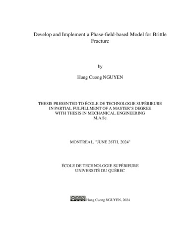 Nguyen, Hung Cuong (2024). Develop and implement a phase-field-based model for brittle fracture. Mémoire de maîtrise électronique, Montréal, École de technologie supérieure.