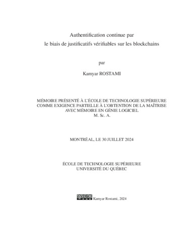 Rostami, Kamyar (2024). Authentification continue par le biais de justificatifs vérifiables sur les blockchains. Mémoire de maîtrise électronique, Montréal, École de technologie supérieure.