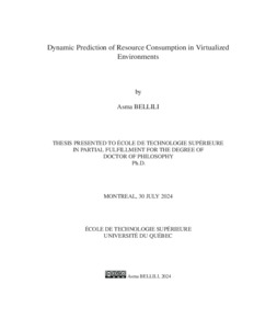 Bellili, Asma (2024). Dynamic prediction of resource consumption in virtualized environments. Thèse de doctorat électronique, Montréal, École de technologie supérieure.