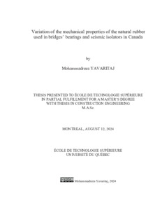 Yavaritaj, Mohammadreza (2024). Variation of the mechanical properties of the natural rubber used in bridges’ bearings and seismic isolators in Canada. Mémoire de maîtrise électronique, Montréal, École de technologie supérieure.