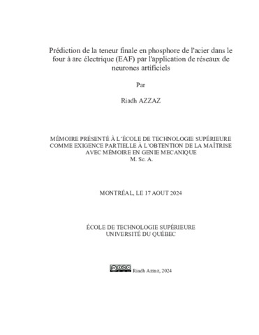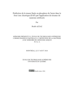 Azzaz, Riadh (2024). Prédiction de la teneur finale en phosphore de l'acier dans le four à arc électrique (EAF) par l'application de réseaux de neurones artificiels. Mémoire de maîtrise électronique, Montréal, École de technologie supérieure.