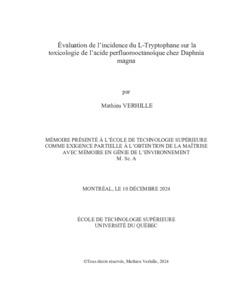 Verhille, Mathieu (2024). Évaluation de l’incidence du L-Tryptophane sur la toxicologie de l’acide perfluorooctanoïque chez Daphnia magna. Mémoire de maîtrise électronique, Montréal, École de technologie supérieure.