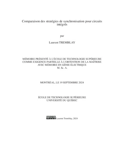 Tremblay, Laurent (2024). Comparaison des stratégies de synchronisation pour circuits intégrés. Mémoire de maîtrise électronique, Montréal, École de technologie supérieure.