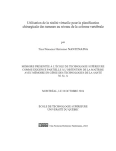 Nantenaina, Tina Nomena Herimino (2024). Utilisation de la réalité virtuelle pour la planification chirurgicale des tumeurs au niveau de la colonne vertébrale. Mémoire de maîtrise électronique, Montréal, École de technologie supérieure.