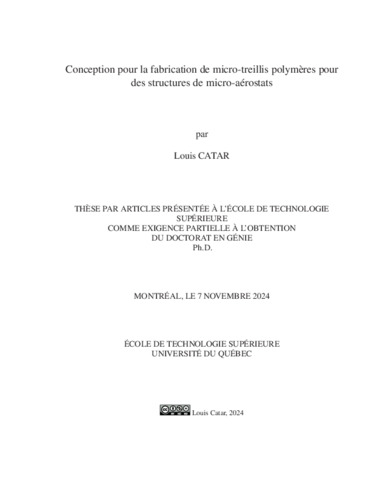 Catar, Louis (2024). Conception pour la fabrication de micro-treillis polymères pour des structures de micro-aérostats. Thèse de doctorat électronique, Montréal, École de technologie supérieure.