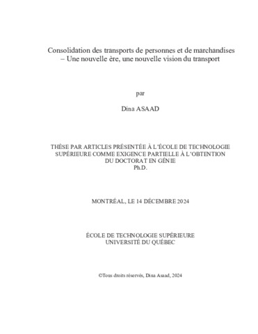 Asaad, Dina (2024). Consolidation des transports de personnes et de marchandises – Une nouvelle ère, une nouvelle vision du transport. Thèse de doctorat électronique, Montréal, École de technologie supérieure.