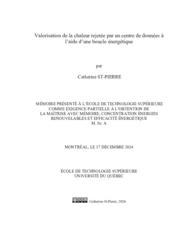 St-Pierre, Catherine (2024). Valorisation de la chaleur rejetée par un centre de données à l’aide d’une boucle énergétique. Mémoire de maîtrise électronique, Montréal, École de technologie supérieure.