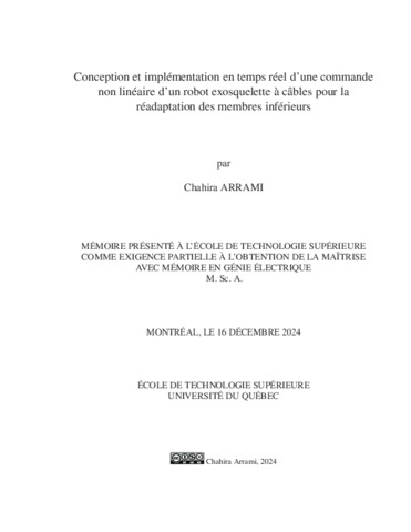 Arrami, Chahira (2024). Conception et implémentation en temps réel d’une commande non linéaire d’un robot exosquelette à câbles pour la réadaptation des membres inférieurs. Mémoire de maîtrise électronique, Montréal, École de technologie supérieure.