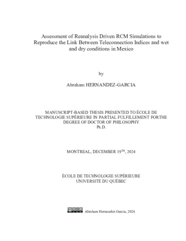 Hernandez-Garcia, Abraham (2024). Assessment of reanalysis driven RCM simulations to reproduce the link between teleconnection indices and wet and dry conditions in Mexico. Thèse de doctorat électronique, Montréal, École de technologie supérieure.