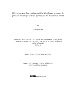 Heni, Rihab (2024). Développement d’un conduit auditif artificiel pour la mesure de pression mécanique statique générée par des bouchons à oreille. Mémoire de maîtrise électronique, Montréal, École de technologie supérieure.