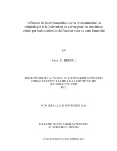 El Bedoui, Sarra (2024). Influence de la carbonatation sur la microstructure, la minéralogie et la lixiviation du cuivre pour les matériaux traités par stabilisation/solidification avec ou sans bentonite. Thèse de doctorat électronique, Montréal, École de technologie supérieure.