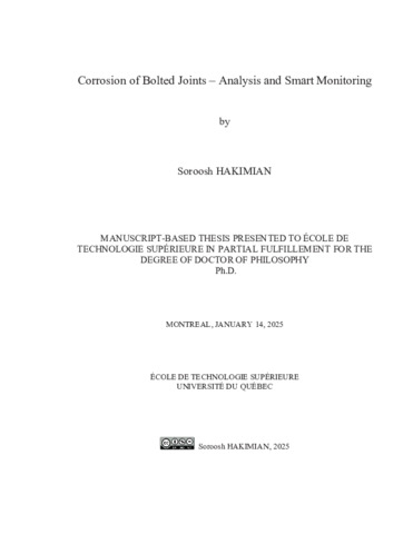 Hakimian, Soroosh (2025). Corrosion of bolted joints – analysis and smart monitoring. Thèse de doctorat électronique, Montréal, École de technologie supérieure.
