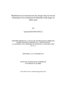 Keugong Foula, Jaurelle (2025). Modélisation de la transmission des charges dans les travaux d'étaiement et de ré-étaiement de bâtiments multi-étages en béton armé. Mémoire de maîtrise électronique, Montréal, École de technologie supérieure.