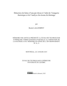 Lallement, Basile (2025). Détection de fuites d’eau par drone à l’aide de l’imagerie thermique et de l’analyse du réseau de drainage. Mémoire de maîtrise électronique, Montréal, École de technologie supérieure.
