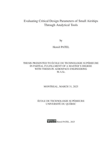 Patel, Hemil (2025). Evaluating critical design parameters of small airships through analytical tools. Mémoire de maîtrise électronique, Montréal, École de technologie supérieure.