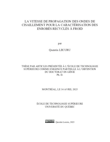Lecuru, Quentin (2025). La vitesse de propagation des ondes de cisaillement pour la caractérisation des enrobés recyclés à froid. Thèse de doctorat électronique, Montréal, École de technologie supérieure.