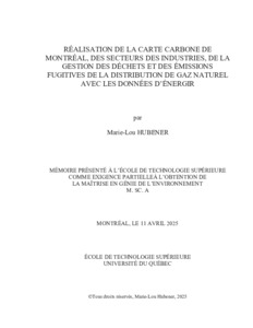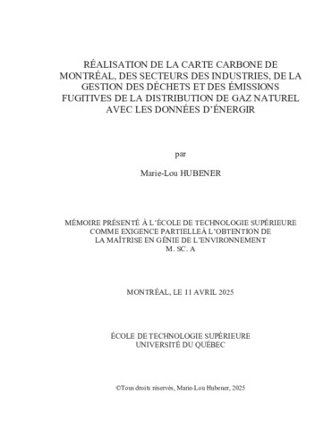 Hubener, Marie-Lou (2025). Réalisation de la carte carbone de Montréal, des secteurs des industries, de la gestion des déchets et des émissions fugitives de la distribution de gaz naturel avec les données d’Énergir. Mémoire de maîtrise électronique, Montréal, École de technologie supérieure.