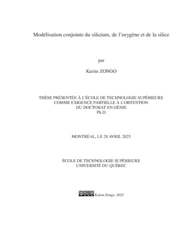 Zongo, Karim (2025). Modélisation conjointe du silicium, de l’oxygène et de la silice. Thèse de doctorat électronique, Montréal, École de technologie supérieure.