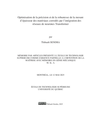 Sendra, Thibault (2025). Optimisation de la précision et de la robustesse de la mesure d’épaisseur des matériaux corrodés par l’intégration des réseaux de neurones Transformer. Mémoire de maîtrise électronique, Montréal, École de technologie supérieure.