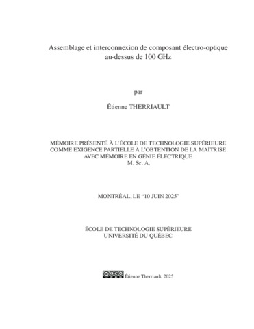 Therriault, Étienne (2025). Assemblage et interconnexion de composant électro-optique au-dessus de 100 GHz. Mémoire de maîtrise électronique, Montréal, École de technologie supérieure.