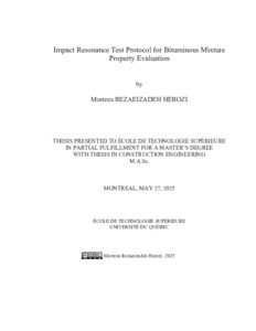 Rezaeizadeh Herozi, Morteza (2025). Impact resonance test protocol for bituminous mixture property evaluation. Mémoire de maîtrise électronique, Montréal, École de technologie supérieure.