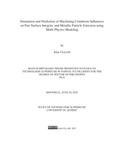 Ullah, Irfan (2025). Simulation and prediction of machining conditions influences on part surface integrity and metallic particle emission using multi-physics modeling. Thèse de doctorat électronique, Montréal, École de technologie supérieure.
