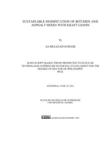 Rezazad Gohari, Ali (2025). Sustainable modification of bitumen and asphalt mixes with kraft lignin. Thèse de doctorat électronique, Montréal, École de technologie supérieure.