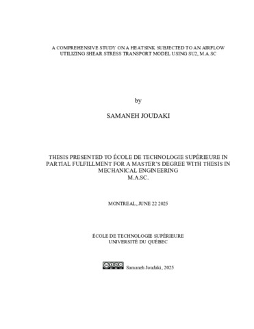 Joudaki, Samaneh (2025). A comprehensive study on a heatsink subjected to an airflow utilizing shear stress transport model using SU2. Mémoire de maîtrise électronique, Montréal, École de technologie supérieure.
