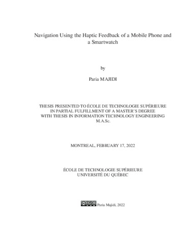 Majidi, Paria (2022). Navigation using the haptic feedback of a mobile phone and a smartwatch. Mémoire de maîtrise électronique, Montréal, École de technologie supérieure.
