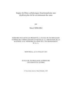 Mebarki, Manel (2025). Impact de fibres cellulosiques fonctionnalisées aux (hydr)oxydes de fer en traitement des eaux. Mémoire de maîtrise électronique, Montréal, École de technologie supérieure.