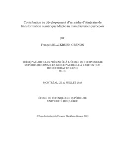 Blackburn-Grenon, François (2025). Contribution au développement d’un cadre d’itinéraire de transformation numérique adapté au manufacturier québécois. Thèse de doctorat électronique, Montréal, École de technologie supérieure.