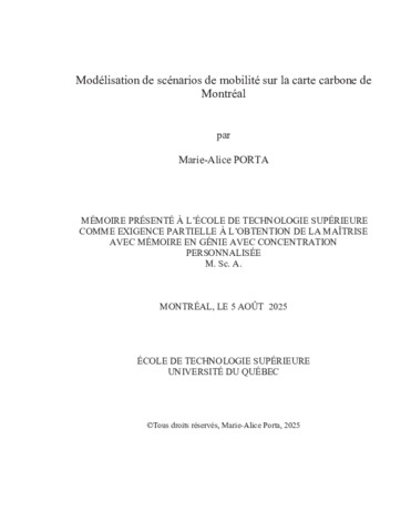 Porta, Marie-Alice (2025). Modélisation de scénarios de mobilité sur la carte carbone de Montréal. Mémoire de maîtrise électronique, Montréal, École de technologie supérieure.