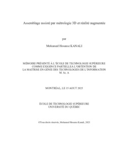 Kanali, Mohamed Hosame (2025). Assemblage assisté par métrologie 3D et réalité augmentée. Mémoire de maîtrise électronique, Montréal, École de technologie supérieure.