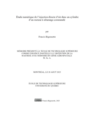 Bigaouette, Francis (2025). Étude numérique de l’injection directe d’air dans un cylindre d’un moteur à allumage commandé. Mémoire de maîtrise électronique, Montréal, École de technologie supérieure.